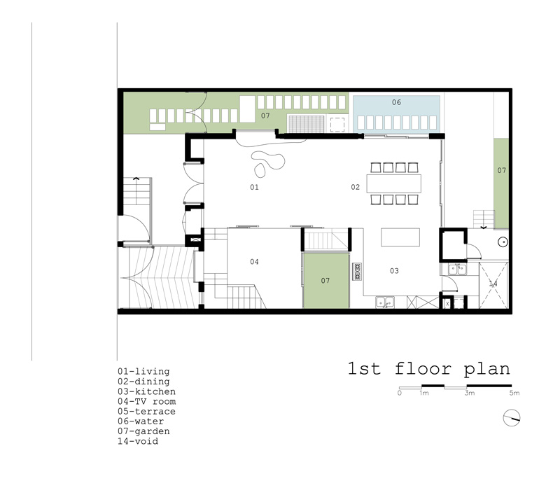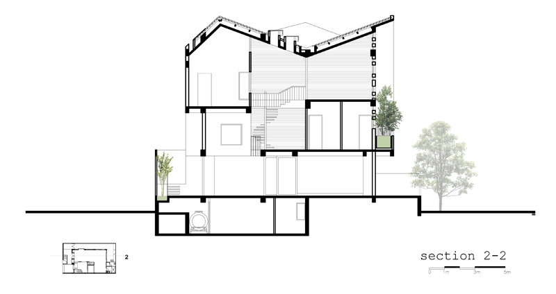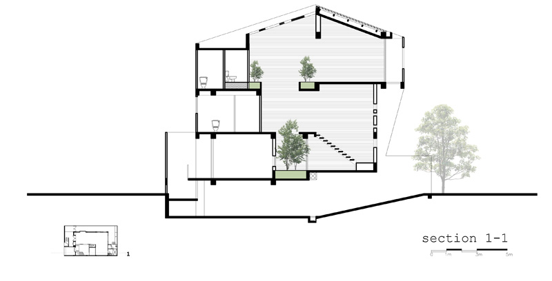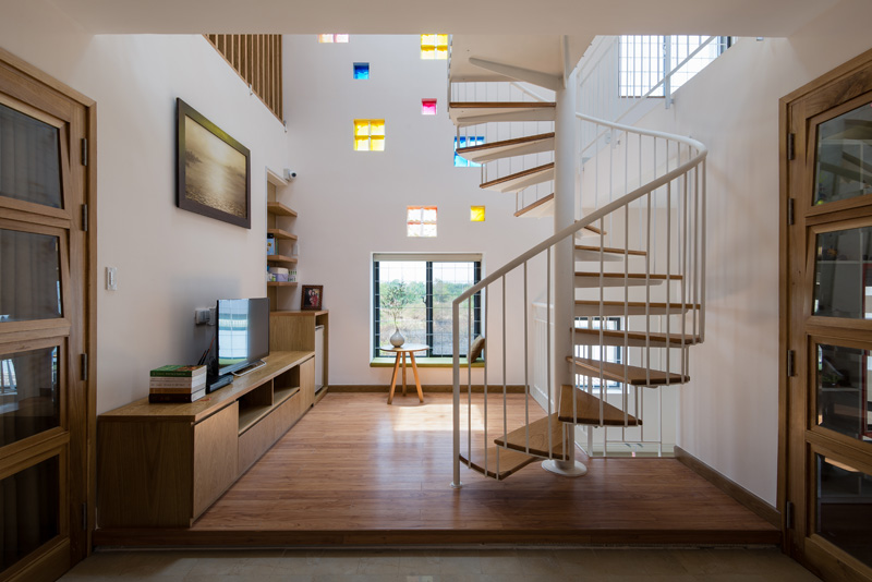 The house, which contains many functions, requires to be flexibly designed. The space is carefully considered to create the inside yard, like “a heart”, that separates function areas by natural factors. Beside that, bringing the sun and the rain into house is so interesting. It really aspired people, gave them effort to work, to play music, to cook, to meet friends and party together.