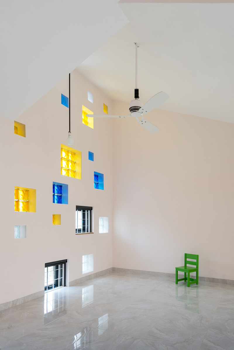 Truong An Architecture together with 23°5 Studio, have designed the 2H House in Ho Chi Minh City, Vietnam, that prominently features colored glass block windows.